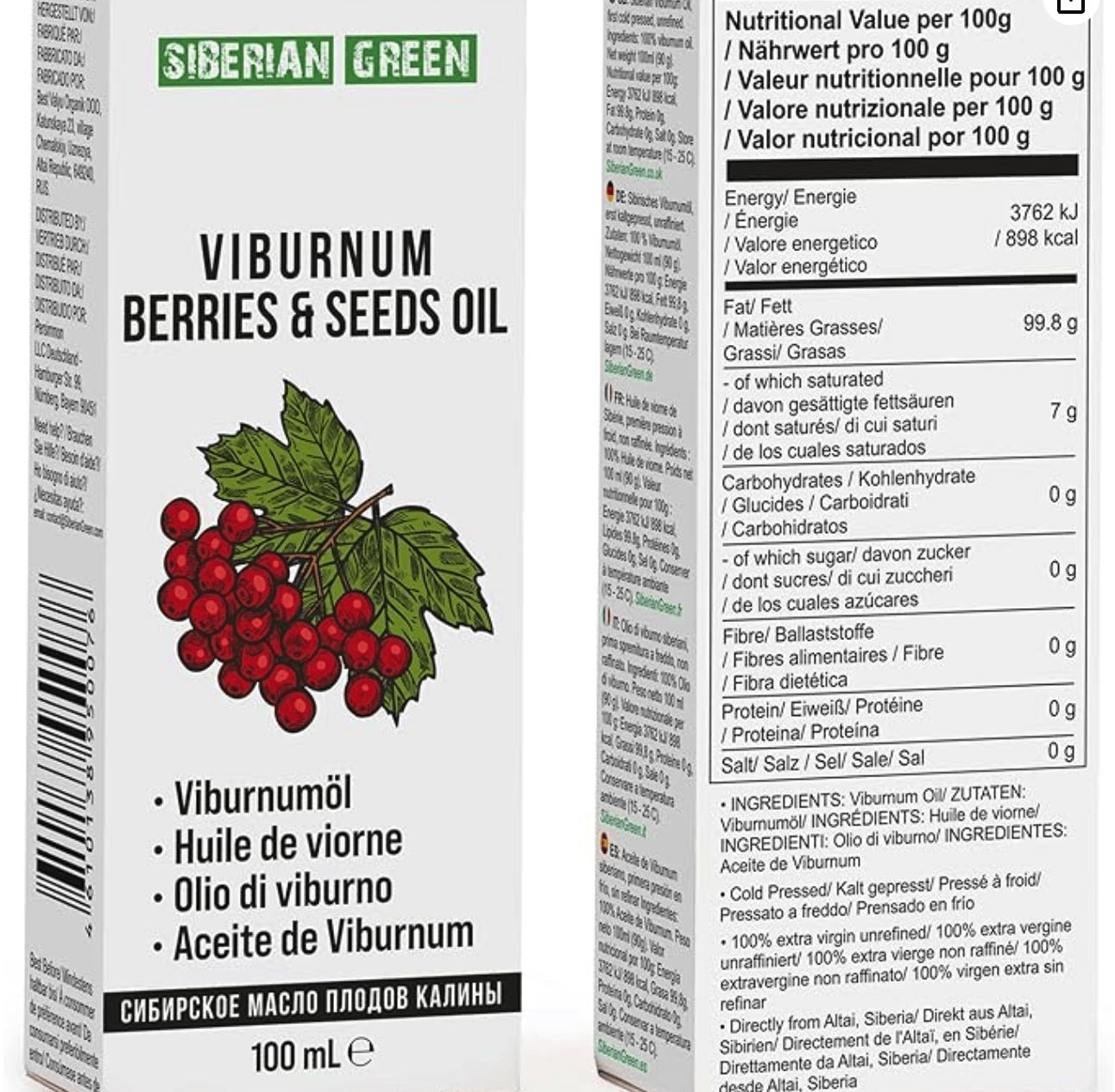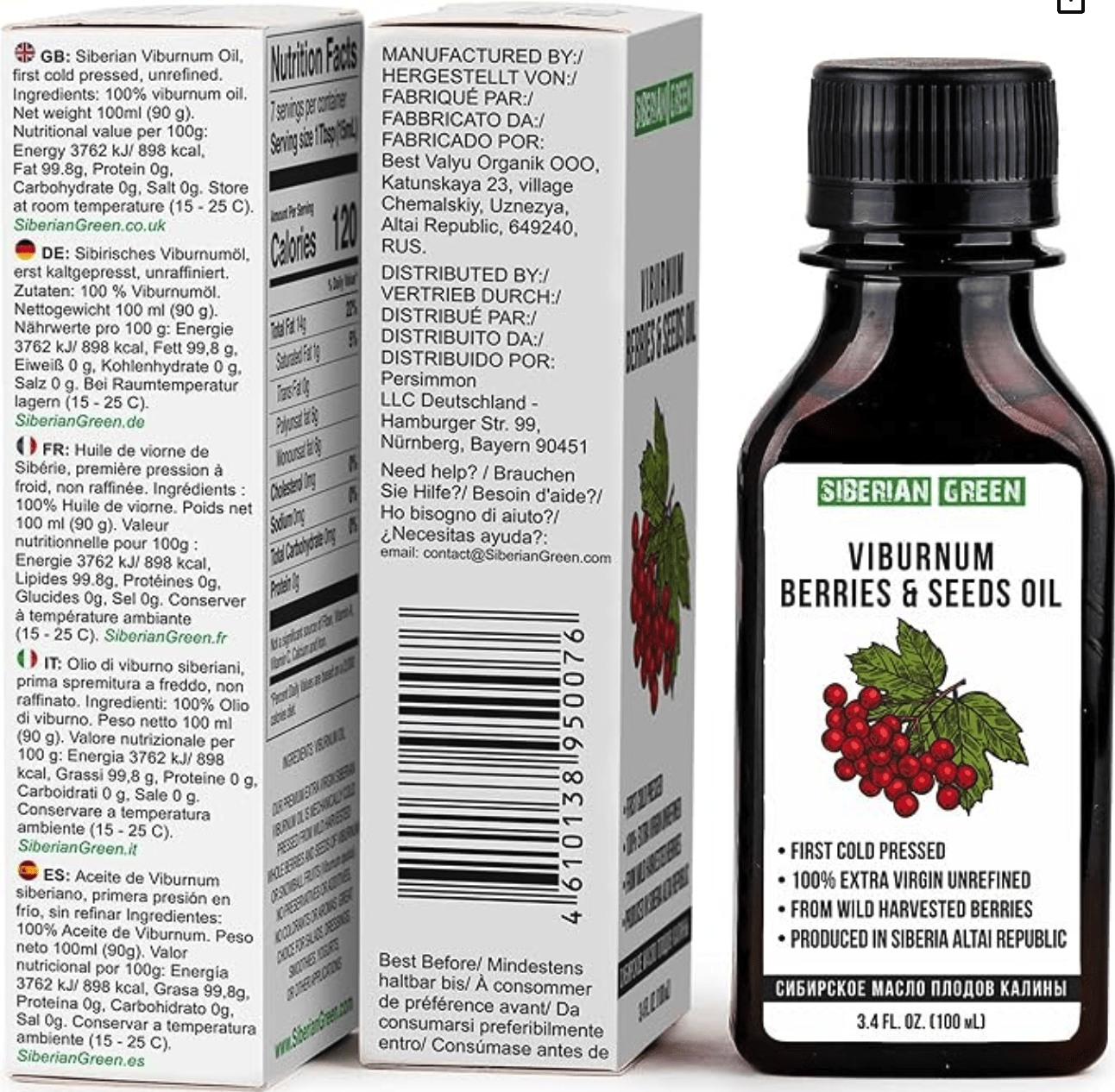 - Premium Quality: Cold pressed, Extra virgin unrefined and undiluted, from wild harvested seeds of Siberian Snowball, Viburnum opulus. Directly from Altai, Siberia. BPA-Free UV-protected specially designed PET bottle and premium packaging to preserve best quality Viburnum oil. Directly from Altai, Siberia